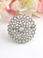 The Gold Tone Ring is a beautiful piece adorned with simulated polkis and multicolored stones. Here are the details: