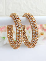1 Pair rose gold finish screw opening bangle studded with simulated polki diamonds.