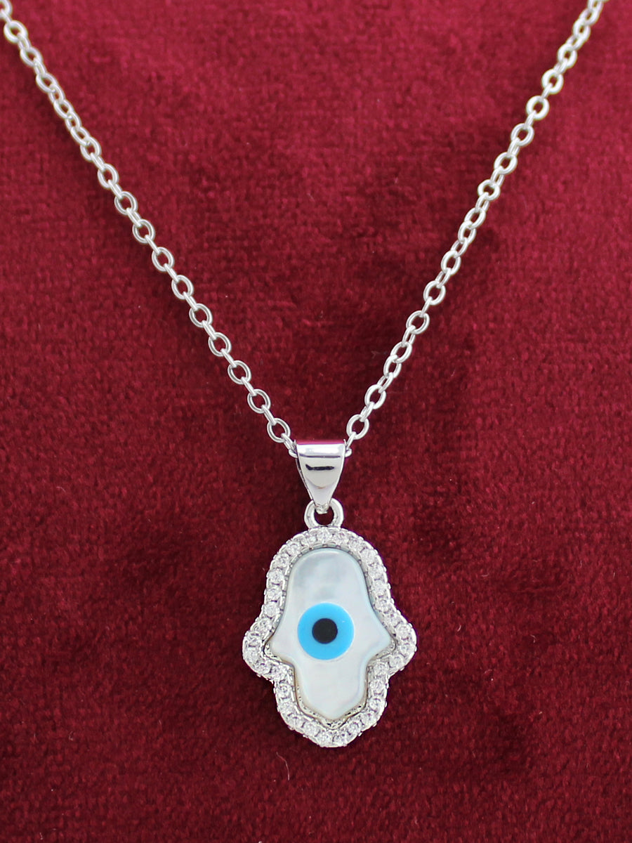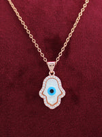 This chain necklace features a tri-color design with gold, silver, and rose gold finishes, adorned with simulated diamond CZs for a glamorous touch. The pendant adds a subtle and elegant element to the overall look. The high-grade alloy metal ensures durability and a stylish appearance. Perfect for adding a touch of sparkle to your everyday or special occasion outfits.