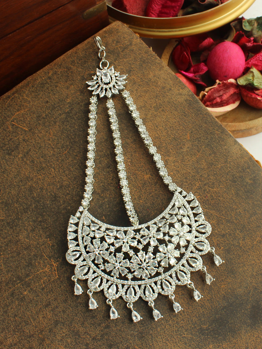 This hair jhoomer is designed to enhance your hairstyle with its sparkling and detailed craftsmanship, making it a beautiful accessory for special events and occasions.