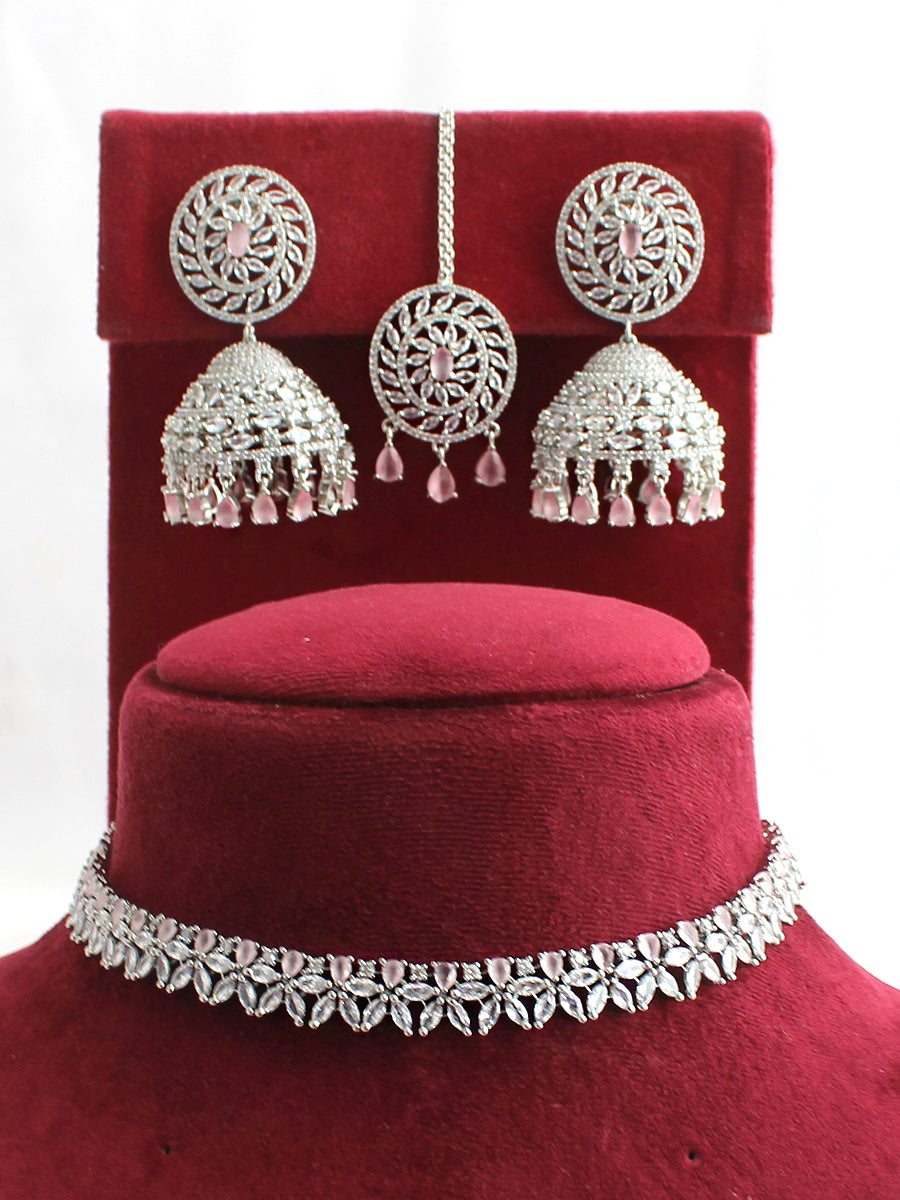 Each piece in this set is adorned with brilliant diamond-cut CZ stones that capture and reflect light with remarkable clarity, mimicking the sparkle of real diamonds. The shimmering CZs are complemented by mint green and pastel pink stones, adding a refreshingly delicate pop of color. These subtle hues bring balance and sophistication, making the set ideal for both contemporary and traditional looks.