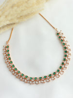 This necklace set combines the elegance of rose gold and silver tones with the vibrant beauty of simulated multi-colored stones and sparkling diamond/CZs. The necklace's length of approximately 17 1/4" (including the chain) makes it a versatile and eye-catching accessory for various occasions. Crafted from high-grade alloy metal, this set ensures durability and a sophisticated look. Elevate your style with the enchanting combination of colors and stones in this Rose Gold/Silver Tone Necklace Set.