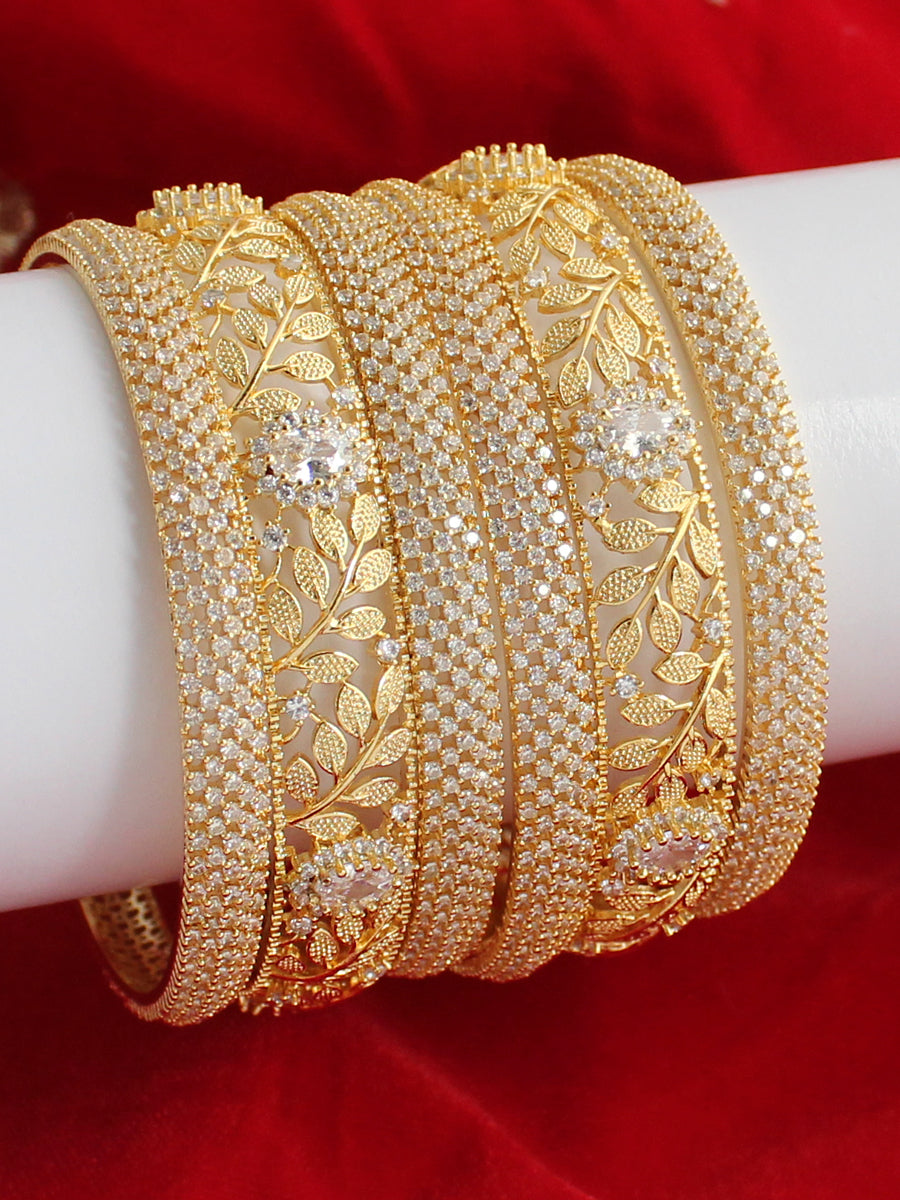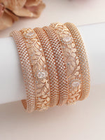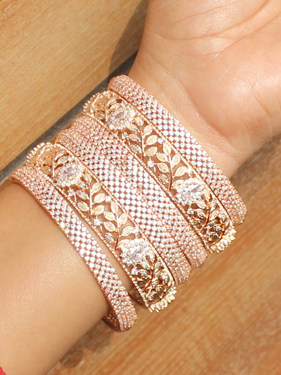 The set of 6 PC Silver, Golden, Rose Gold Bangles studded with Simulated Diamond CZs and Polkis is a dazzling accessory. Here are the specifications: