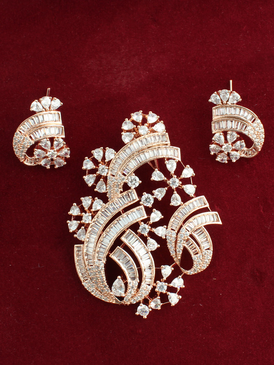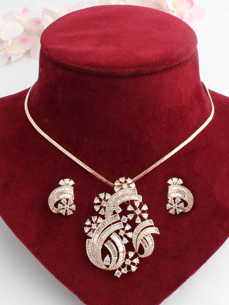 Rose gold/ silver tone pendant set studded with CZs, and baguette cut stones.