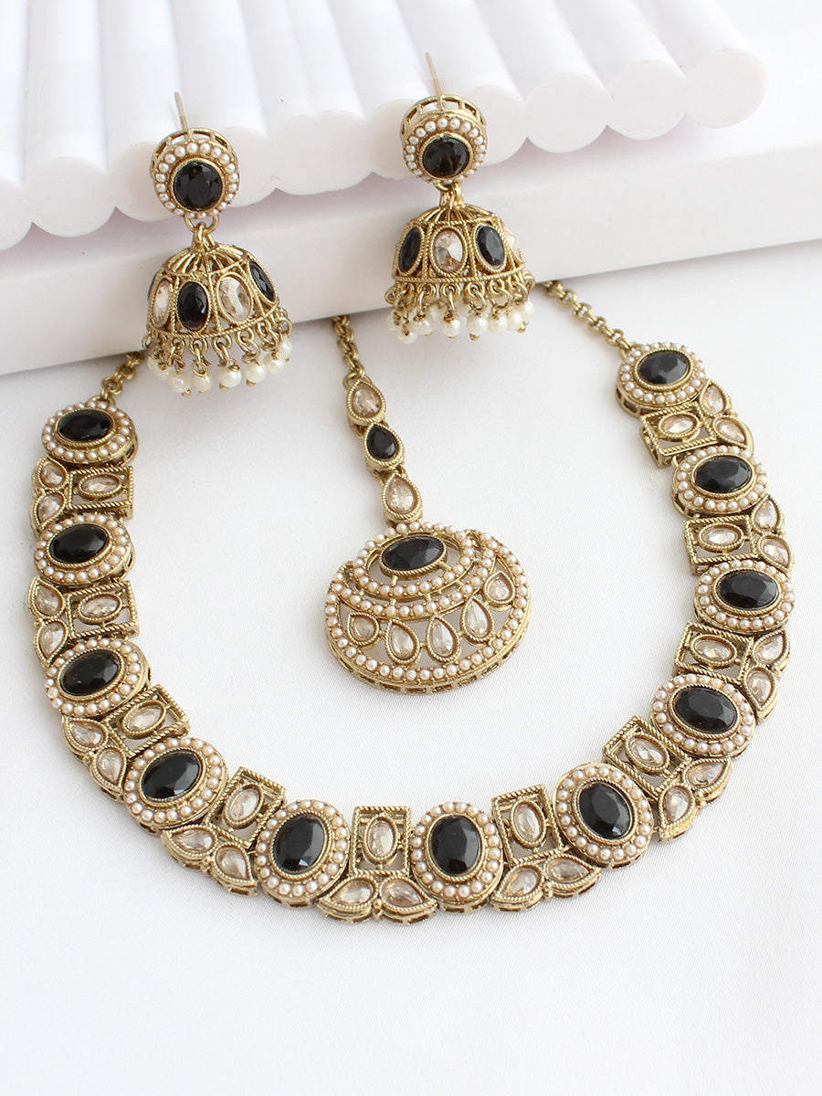 Type: Bib Necklace Set (Necklace, Earrings & Tikka)
