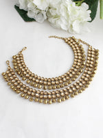 The Gold Tone Anklet Payal Studded With Simulated Kundan and Golden Beads (Ghungroo) is a beautiful accessory. Here are the details: