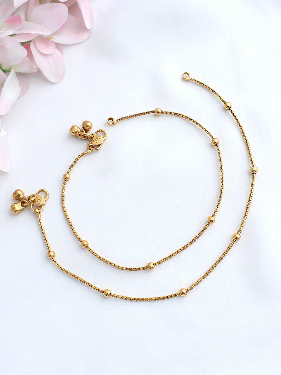 Presenting a pair of Gold Tone Anklet Payal. Crafted on a base of high-grade alloy metal, these anklets blend sophistication with traditional charm, adding a graceful accent to your ensemble.