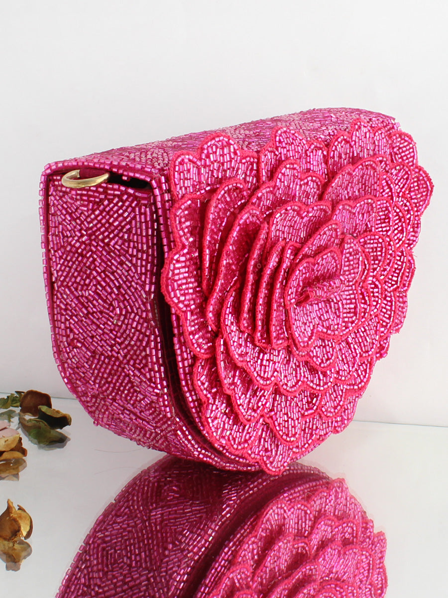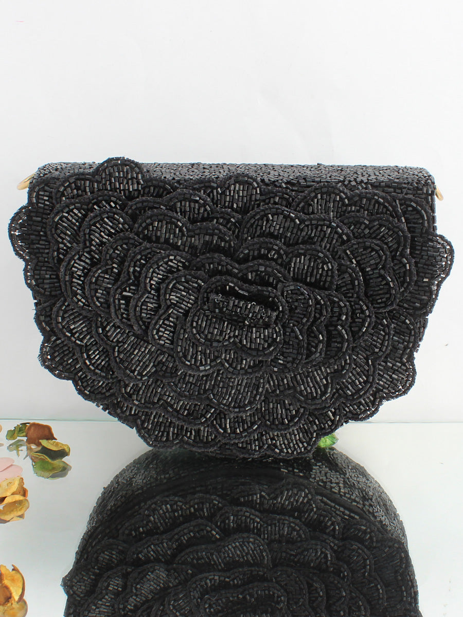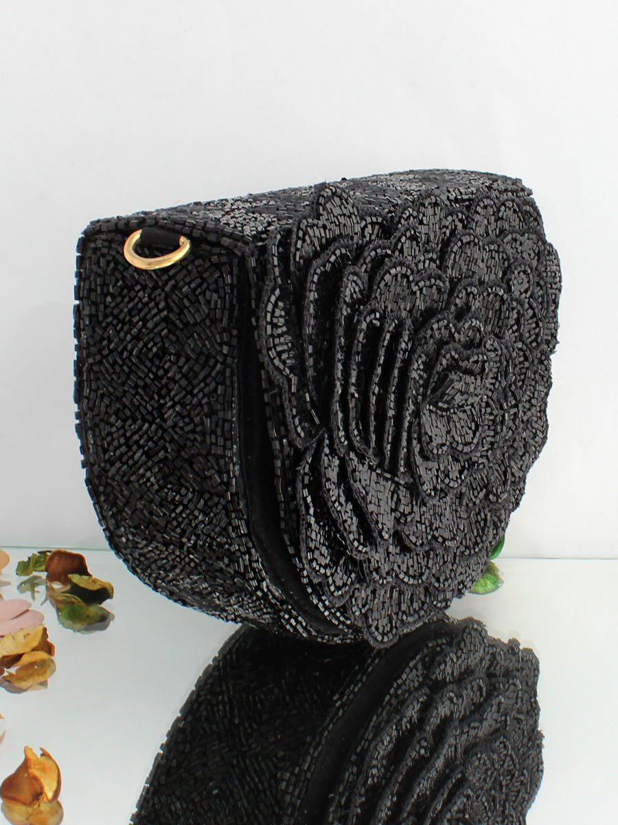 This flap bag / purse adorned with shiny glass pipe beads, the bag has a magnetic closure and an optional detachable embellished handle. This collectible statement accessory fits in your valuables like a smartphone, makeup, keys, currency and cards.