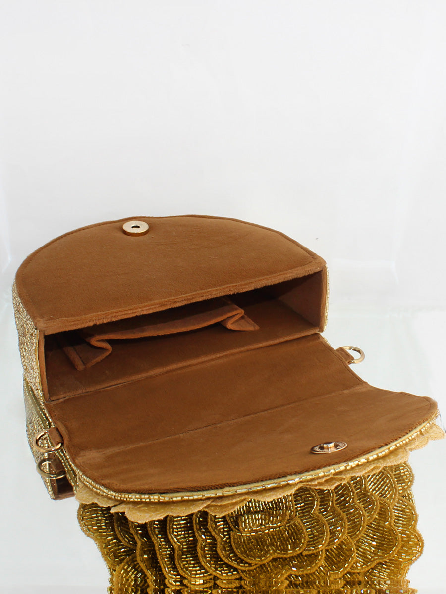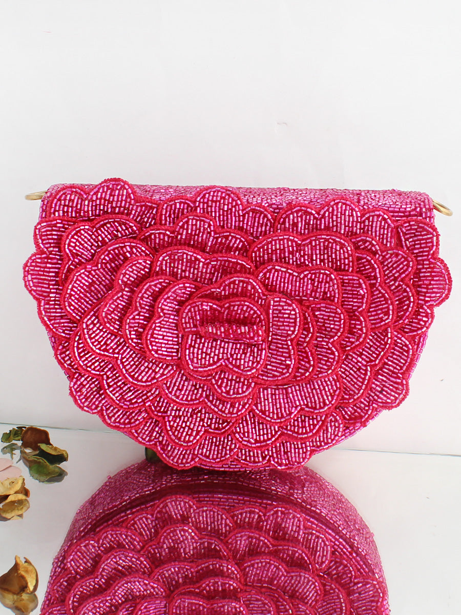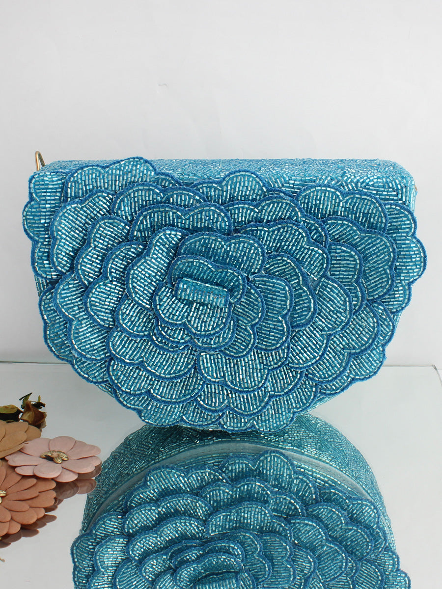 This flap bag / purse adorned with shiny glass pipe beads, the bag has a magnetic closure and an optional detachable embellished handle. This collectible statement accessory fits in your valuables like a smartphone, makeup, keys, currency and cards.