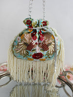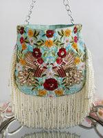 Presenting our Diya Potli/Pouch Bag, adorned with pearls, sequins and crystal beads. Floral hand embroidery for a touch of elegance and sophistication. This exquisite potli is designed with meticulous attention to detail, featuring a string to tighten it and tassels at the end, providing a charming and stylish look. It is spacious enough to fit in your valuables such as a smartphone, makeup, keys, currency, and cards.