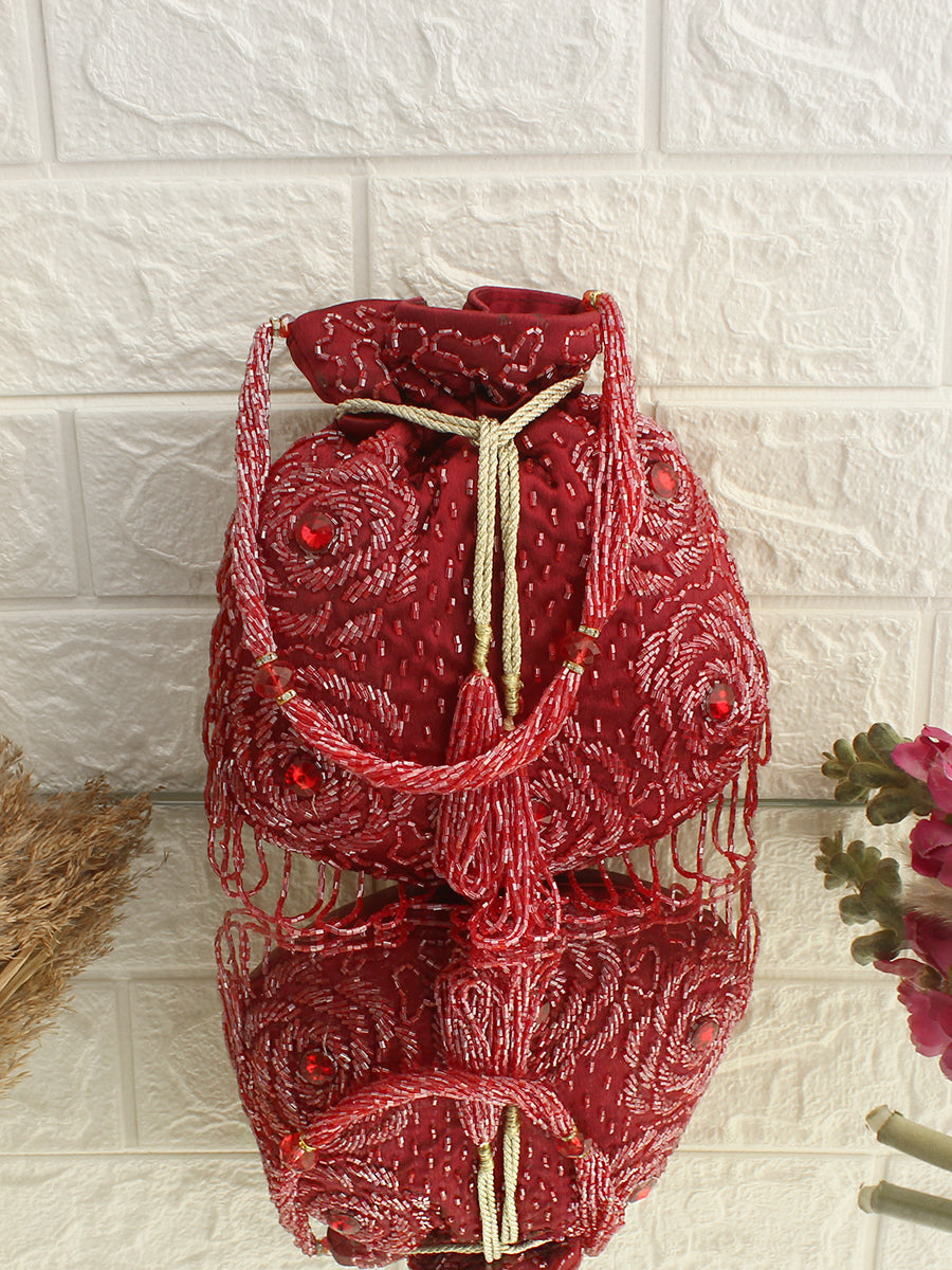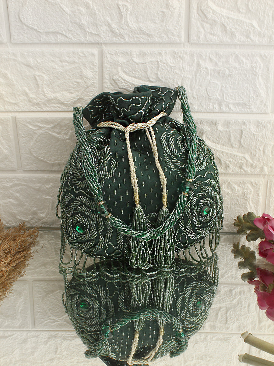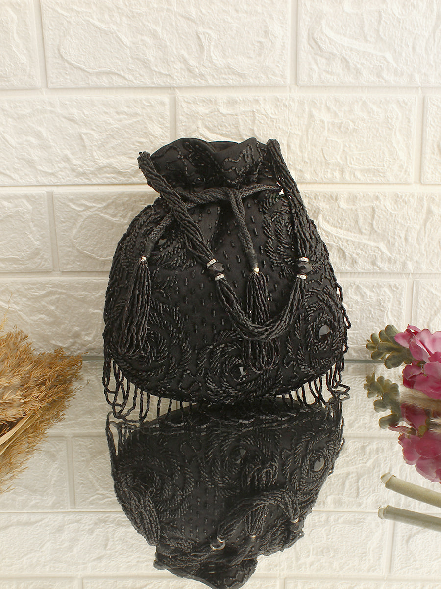 Handcrafted with intricate beadwork, this elegant bag is the perfect accessory for any occasion. The drawstring closure ensures your belongings stay safe and secure. Available in a range of stunning jewel tones and neutrals, you're sure to find the perfect match for your outfit.