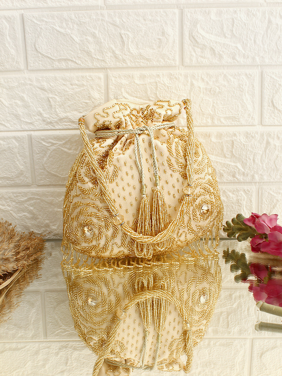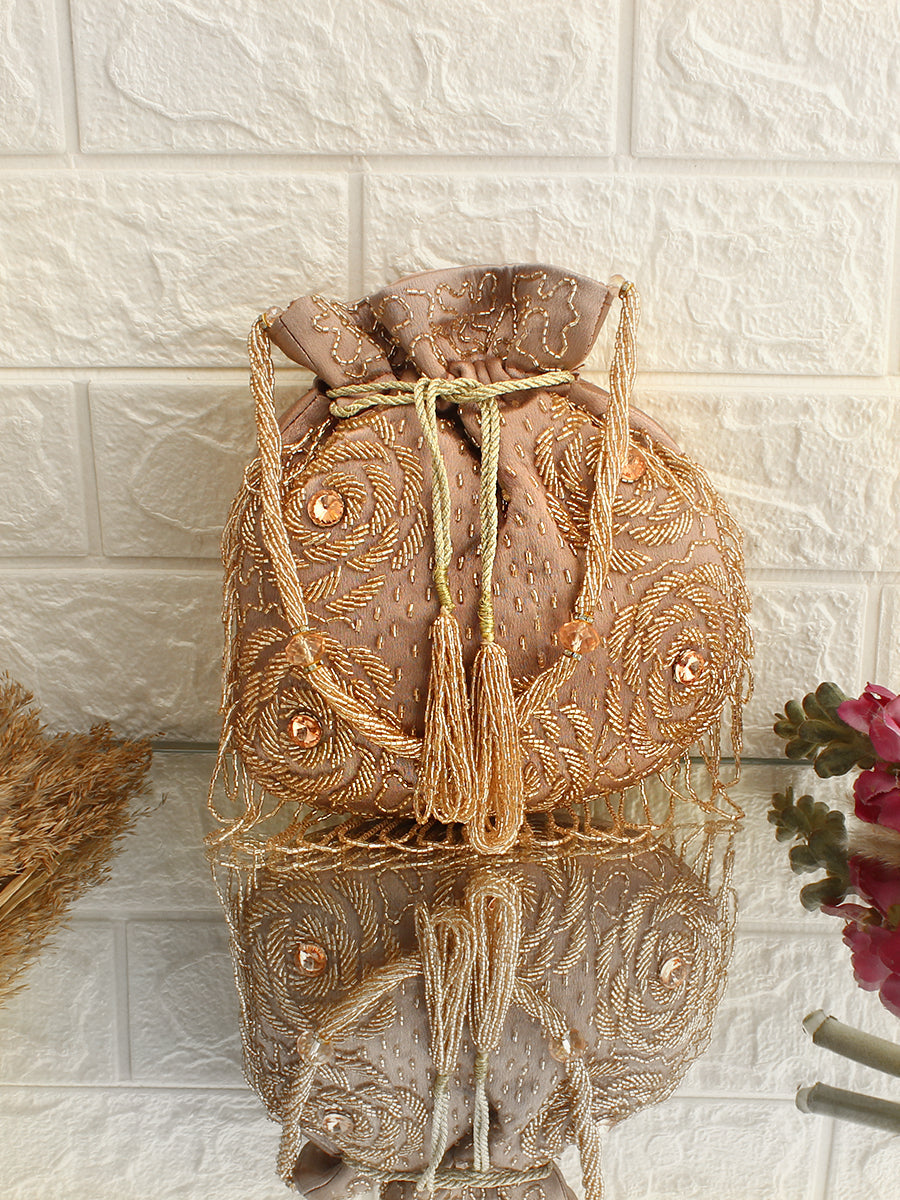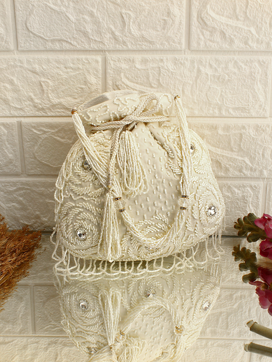 Handcrafted with intricate beadwork, this elegant bag is the perfect accessory for any occasion. The drawstring closure ensures your belongings stay safe and secure. Available in a range of stunning jewel tones and neutrals, you're sure to find the perfect match for your outfit.