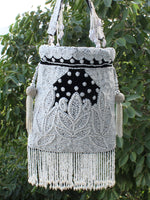 Presenting our Black Velvet Potli/Pouch Bag, adorned with pearls, for a touch of elegance and sophistication. This exquisite potli is designed with meticulous attention to detail, featuring a string to tighten it and tassels at the end, embellished handle providing a charming and stylish look. It is spacious enough to fit in your valuables such as a smartphone, makeup, keys, currency, and cards.