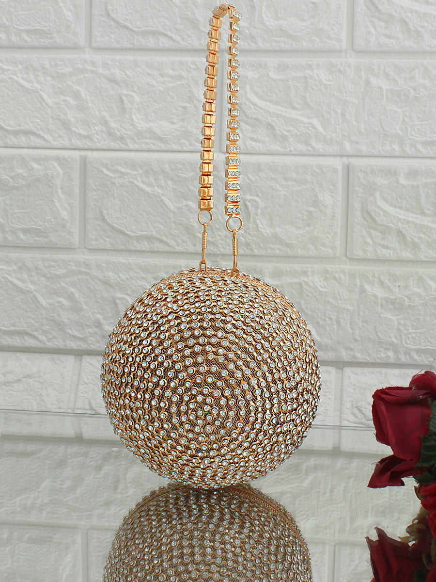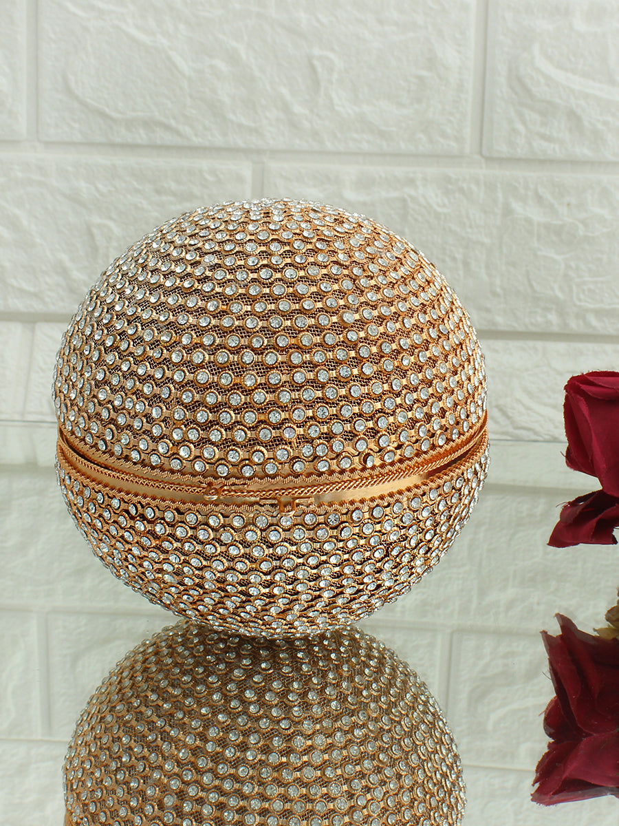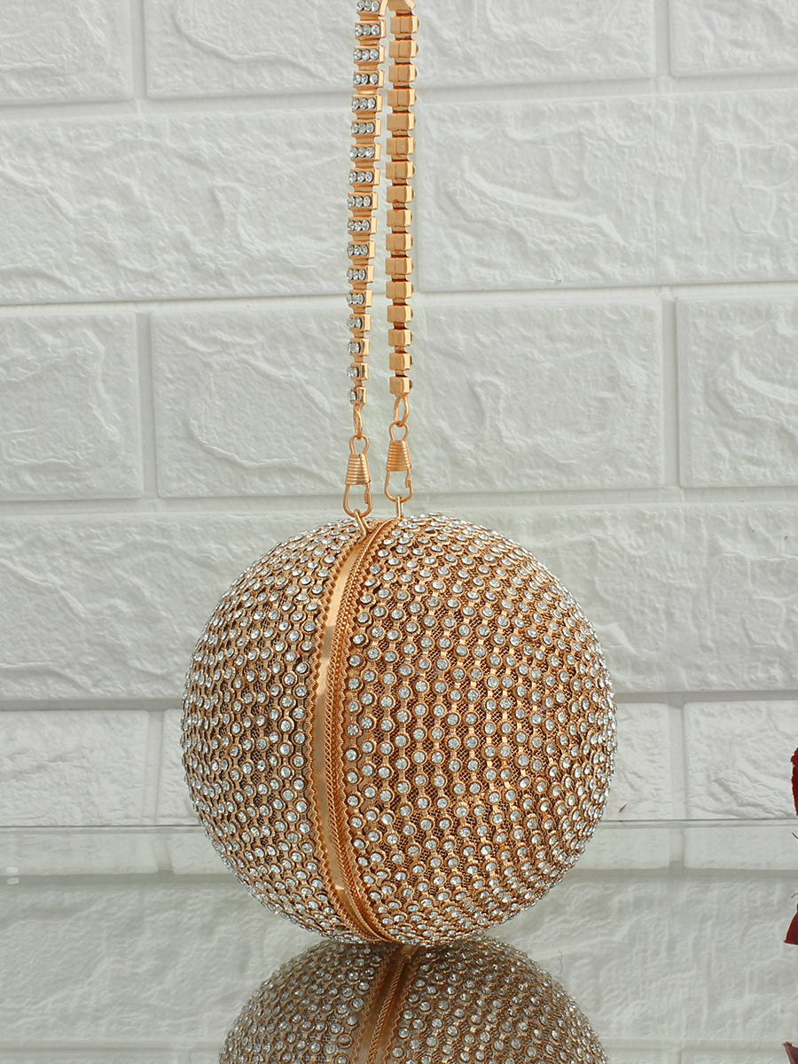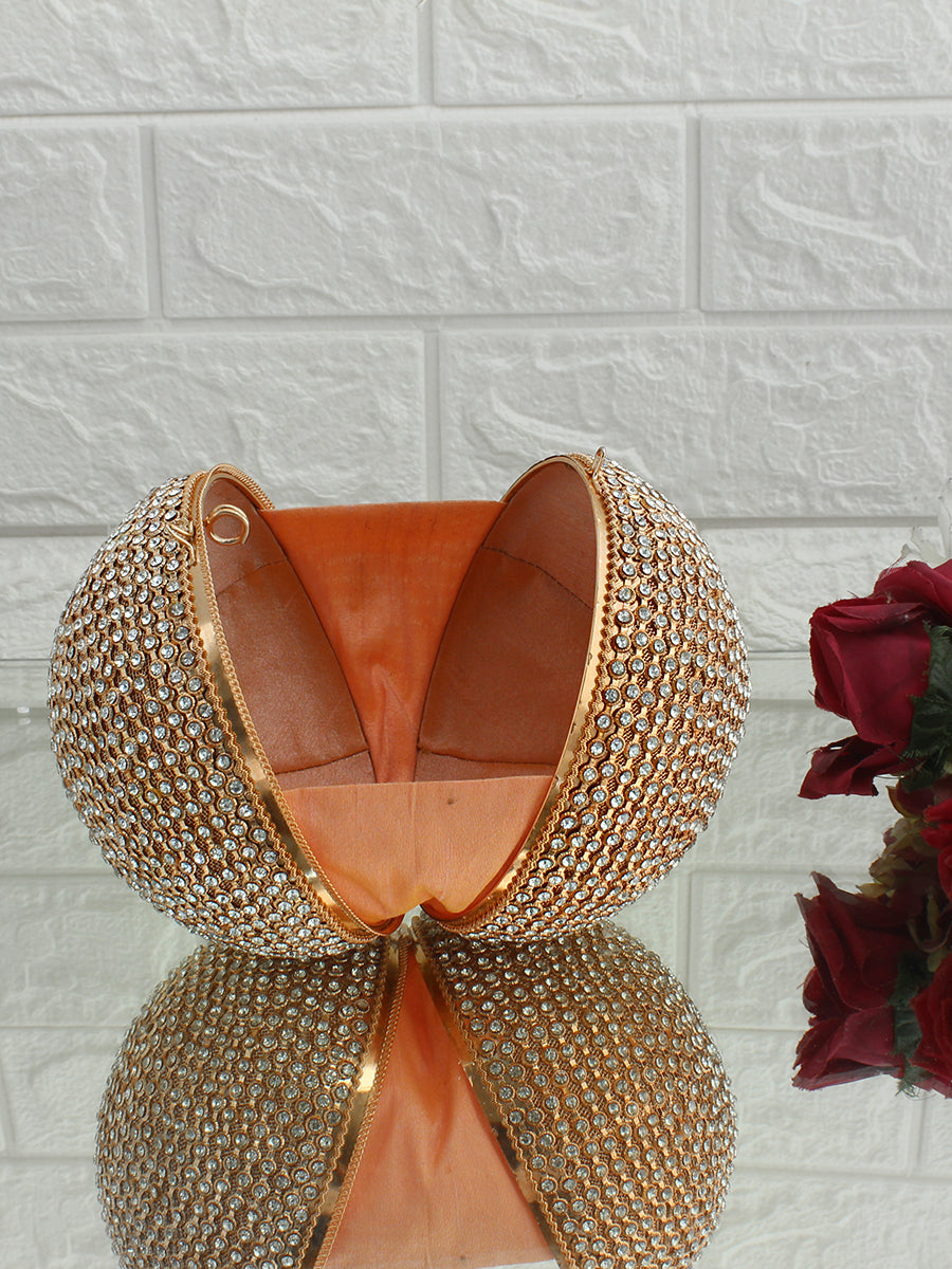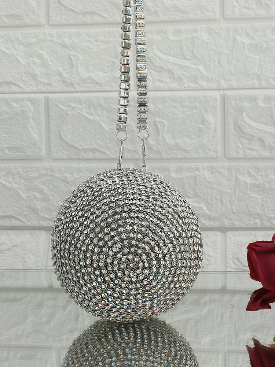 This Round Ball Clutch Bag is chic, fashionable, and uniquely designed to stand out. Its surface is adorned with dazzling Cubic Zirconia (CZs), adding a brilliant bling effect that enhances its luxurious and valuable appeal. Ideal for weddings, fancy dates, events, and business parties, this bag is the perfect statement piece for any special occasion. The clutch features a secure push-closure for easy access to your essentials, while the embellished strap adds an extra touch of elegance and style. this bag brings sparkle and glamour to your ensemble.
