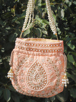 This Potli Bag comes With Pearls, Salma and Zari Work