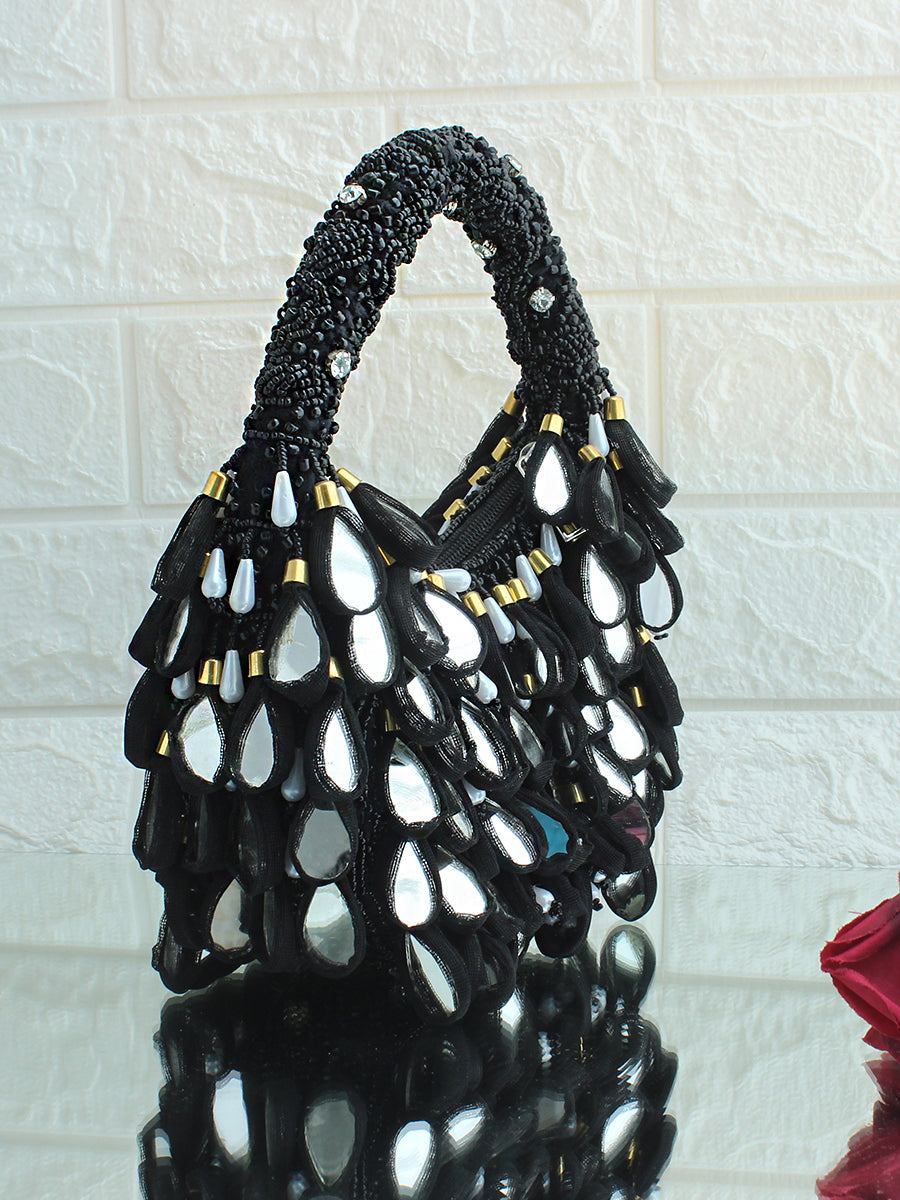 The Rasha Hand Bag is a true masterpiece, showcasing intricate Czs and beadwork that demonstrates exceptional craftsmanship and artistry. This handcrafted beauty radiates elegance and charm, making it the perfect accessory for any festive occasion. The luxurious velvet base serves as a rich and sophisticated foundation, while the embellished handle adds a glamorous touch. Unique pear-shaped mirror tassels complete the design, creating a stunning and eye-catching accessory. Indulge in the elegance of the Rasha Hand Bag, and let it elevate your style with its timeless beauty and festive appeal.