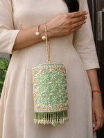 The horizontal opening allows effortless access to your essentials, while the intricate embroidery lends a refined touch of luxury. Finished with a discreet magnetic closure, Sameera seamlessly blends sophistication with secure functionality an ideal accessory for weddings, parties, and celebratory events.