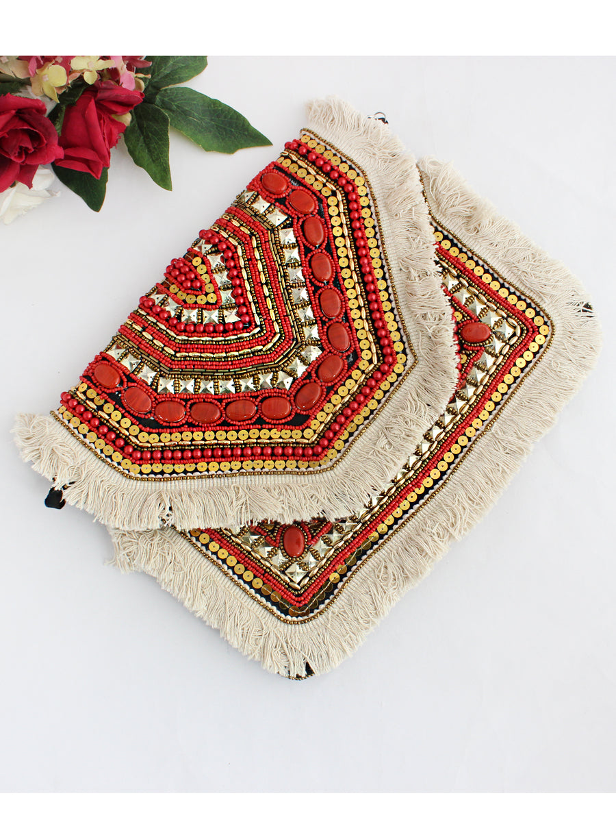 Hand crafted clutch bag adorned with sequence (sippi), & coral stones. the design is all bag's front is beads work and the backside is plan.