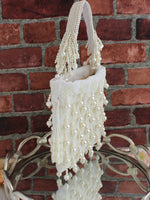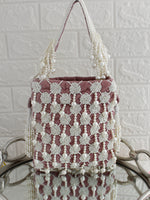 Presenting our Velvet Potli/Pouch Bag, adorned with Pearl beads for a touch of elegance and sophistication. This exquisite potli is designed with meticulous attention to detail, featuring a string to tighten it and tassels at the end, embellished handle providing a charming and stylish look. It is spacious enough to fit in your valuables such as a smartphone, makeup, keys, currency, and cards.