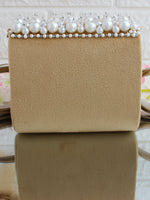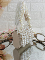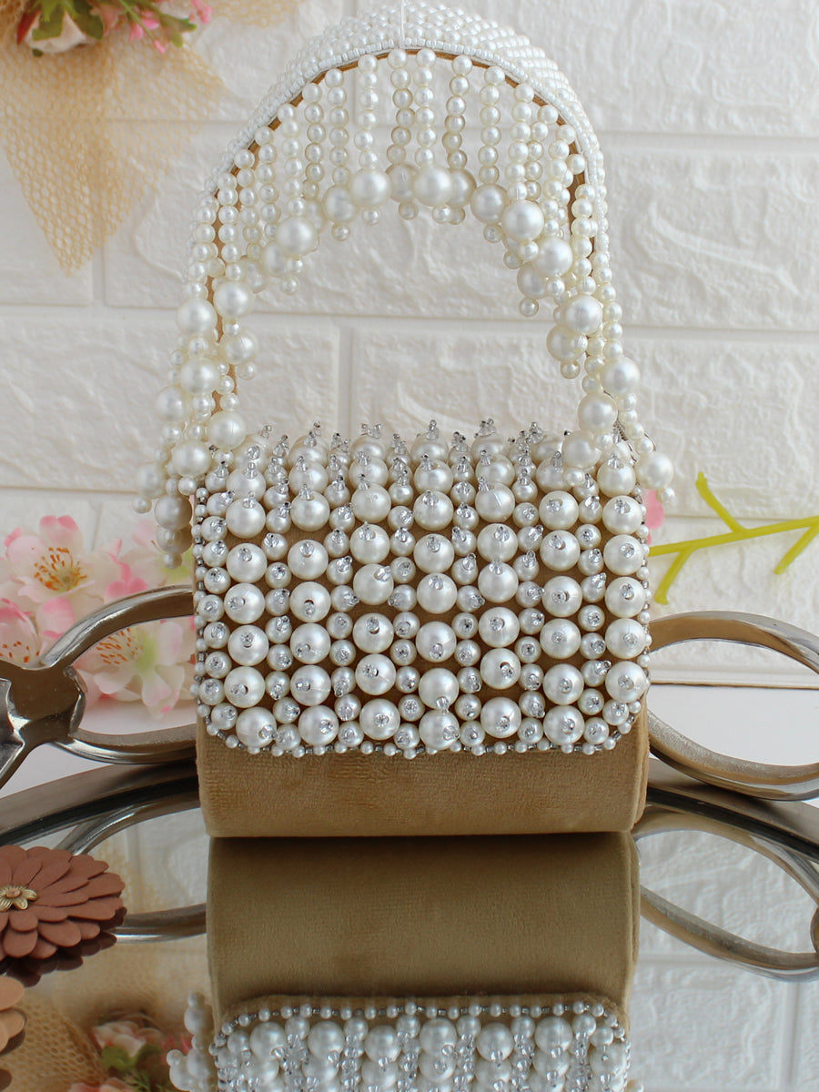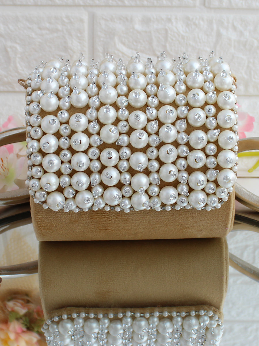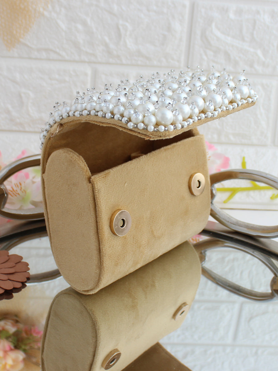 This velvet miniature nano handbag/ clutch / purse is adorned with CZs, Pearls and crystal beads. The bag has a magnetic closure and a detachable embellished handle.