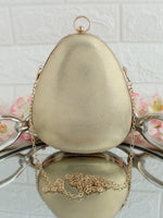 The golden pear drop-shaped clutch bag is a stunning accessory with exquisite details. Here are the specifications:
