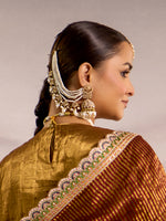 The set includes a 5-layered ear chain that adds a touch of elegance to the overall design. With post back findings for pierced ears, these earrings are not only stylish but also versatile. Crafted from high-grade alloy metal, these gold-tone jhumki earrings are a perfect choice for various occasions such as weddings, festivals, and cultural celebrations.