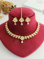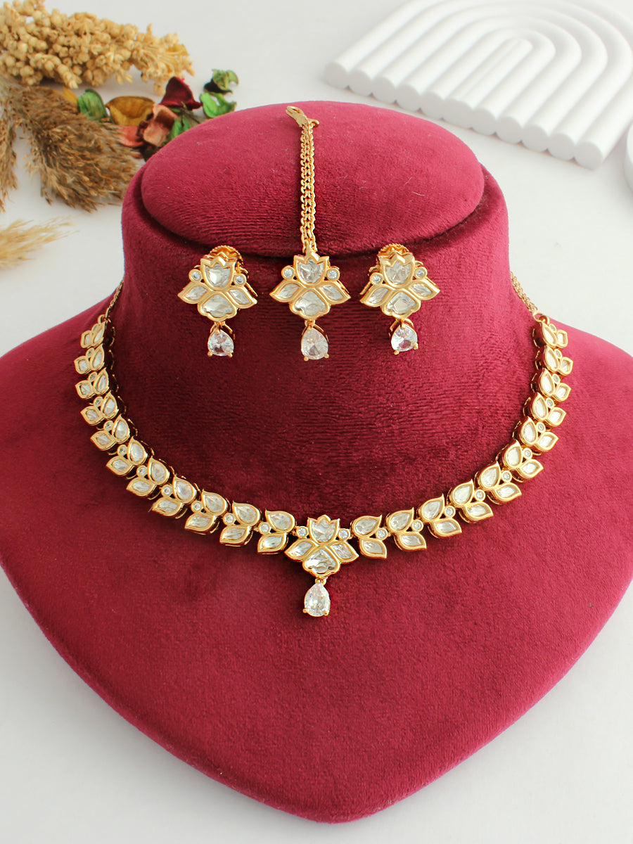 Introducing Gold tone Necklace Set, adorned with simulated polki diamond, Czs for a regal and captivating look.