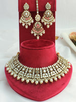 This set is designed to enhance your overall look with its intricate detailing and vibrant elements. The adjustable cord ensures a comfortable fit for all neck sizes. The combination of faux pearls, multi-color stones, and mirrors adds a touch of elegance and uniqueness to the set.