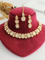 Presenting our Gold tone Necklace Set, adorned with simulated polki diamond, Czs for a timeless and regal look.