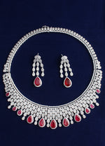 This silver tone necklace set, adorned with simulated diamond CZs and maroon, is a striking piece that seamlessly blends modern and classic elements. The latch lock ensures a secure fit, making it a versatile accessory for various occasions. Ideal for those who appreciate the beauty of the sparkle of simulated diamonds.