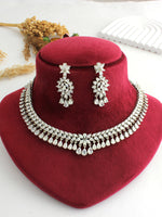 This silver tone necklace set, adorned with simulated diamond CZs, is a striking piece that seamlessly blends modern and classic elements. The latch lock ensures a secure fit, making it a versatile accessory for various occasions. Ideal for those who appreciate the beauty of the sparkle of simulated diamonds.