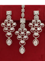 Silver finish bib necklace Set studded with simulated diamond CZs, mint green and pastel pink stones.