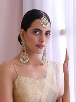 • Gold Tone Earrings Tikka Studded With Simulated Polki Faux Pearl, Maroon, Green, Turquoise, Pink, Peach Multi Colour Stones and Beads.