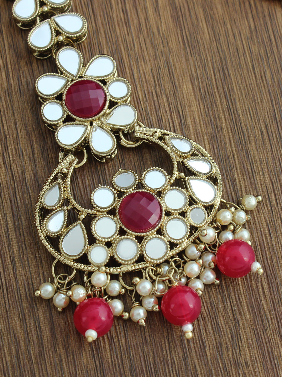 This maang tikka is designed to enhance your forehead area with its intricate detailing and colorful elements, making it a perfect addition to your ethnic or traditional outfits.