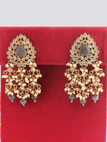 - Gold Tone Earrings Studded With Simulated Polki Faux Pearl Maroon, Yellow Peach, Ruby Pink Pastel Pink, Black, Mint Green, Grey, Turquoise Black Stones and Beads.