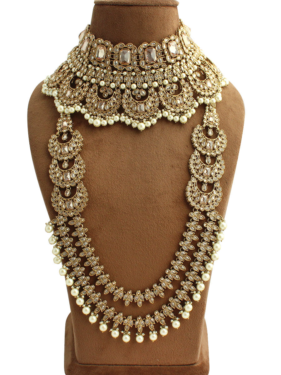 Base: Crafted from high-grade alloy metal, this bridal set not only exudes elegance but also ensures durability, making it a perfect choice for your wedding day. Elevate your bridal look with this timeless and enchanting set that beautifully blends traditional and contemporary elements.
