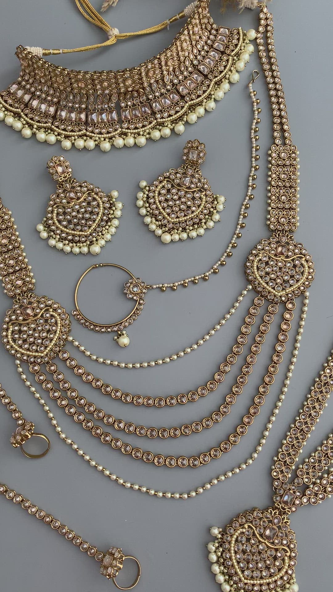 The Indian Wedding Bridal (Dulhan) Gold Tone Necklace Set is a complete and stunning bridal ensemble. Here are the details:
