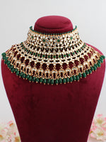 • 1 Pc Choker necklace adorned with faux pearls, simulated Kundan, and captivating pastel pink, green, and mint green stones.