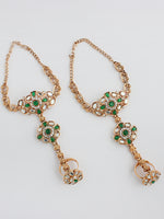 • Embellished with a harmonious blend of faux pearls, simulated Kundan, and exquisite pastel pink, green, and mint green stones.