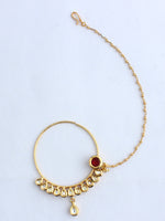 - Gold Plated Nose Ring Studded With Simulated Polki Diamonds, Hot Pink Stones and Faux Pearls.