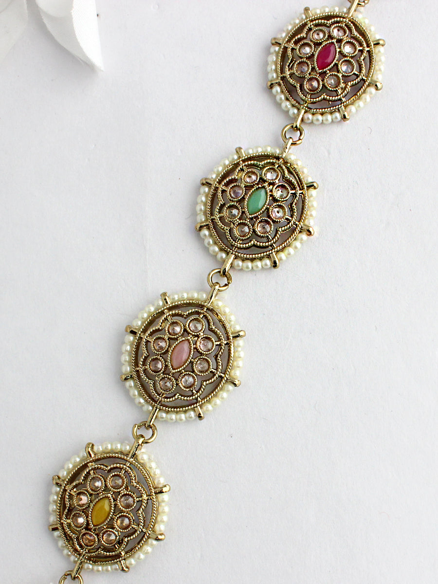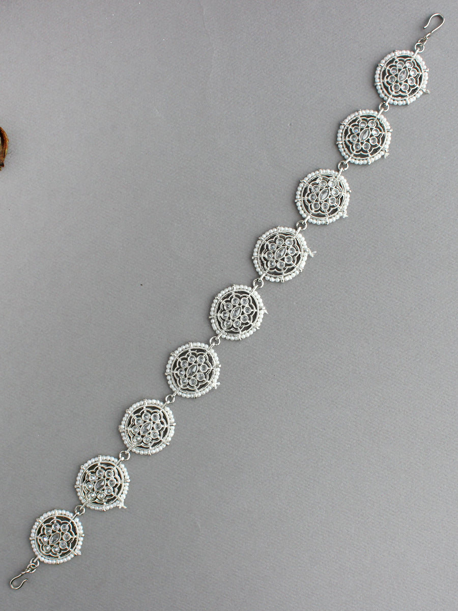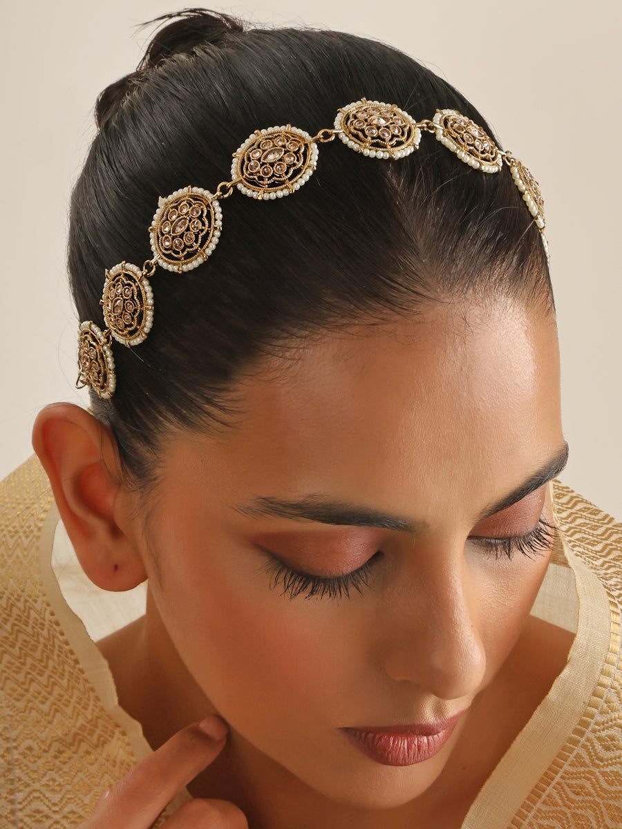 The wedding bridal (dulhan) sheeshphool mathapatti headpiece has the following details: