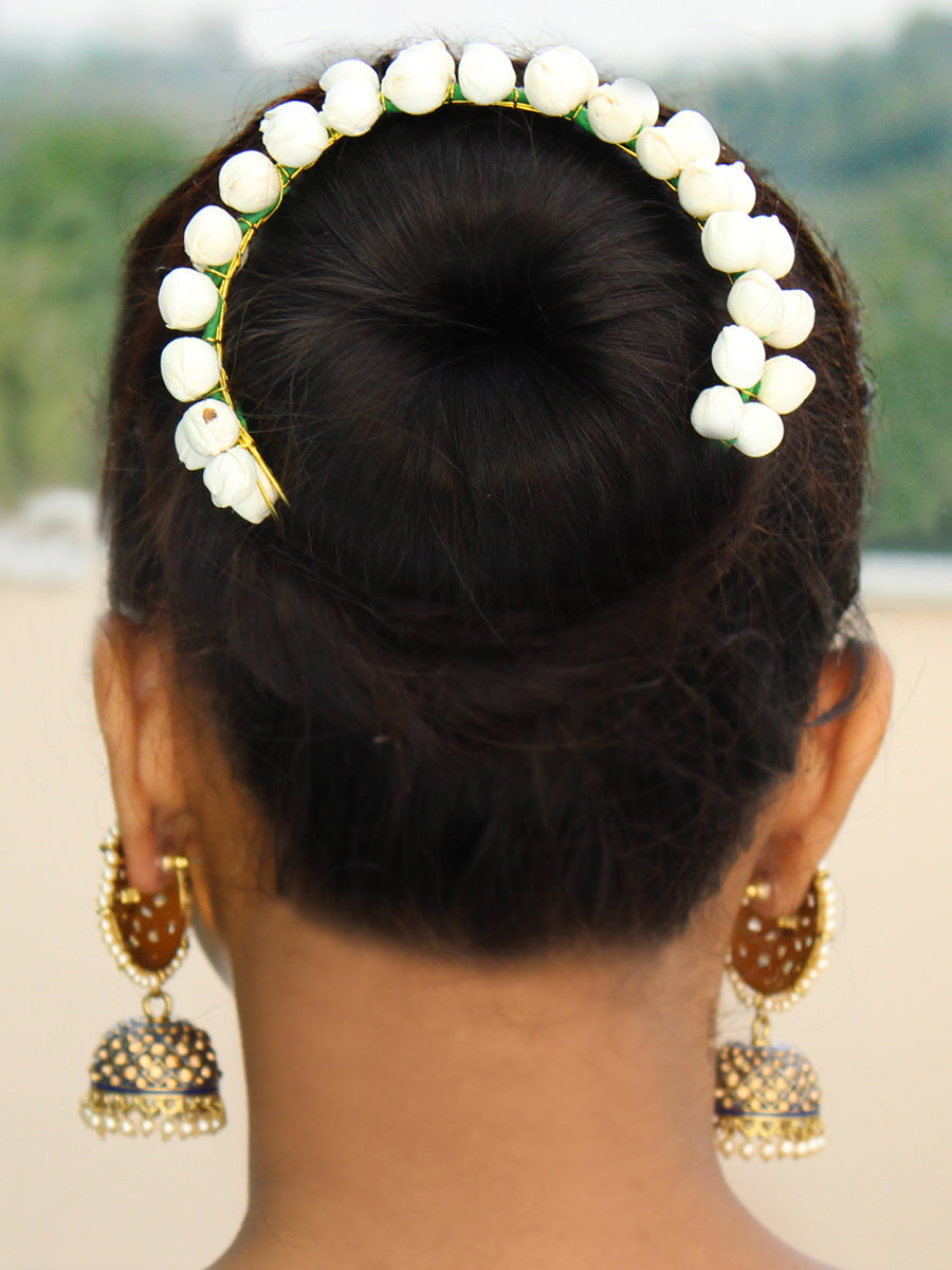 - Artificial Jasmine Flowers: The Gajra is adorned with high-quality artificial jasmine flowers, providing a realistic and beautiful appearance.