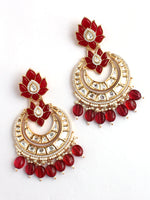 Introducing our Gold Plated Chandbali Earrings, adorned with Simulated polki Diamonds, stones, Maroon Green Beads for a graceful and timeless look. Crafted on a base of high-grade alloy metal, this set seamlessly blends classic elegance with contemporary design, creating a stunning accessory that enhances your overall look.