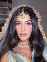 The Aneeza Choker Necklace Set is a stunning blend of tradition and elegance. Crafted from high-grade alloy metal, this set features a beautifully designed choker adorned with simulated white stones, faux pearls, and colored beads. It comes complete with matching Chand Bali earrings and a coordinating tikka, making it the perfect choice for weddings, festivals, and any occasions. Radiate grace and style with this timeless jewelry set.