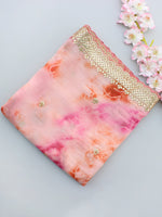 Pink & peach shaded dupatta in organza with handcrafted real gota patti embroidered border.