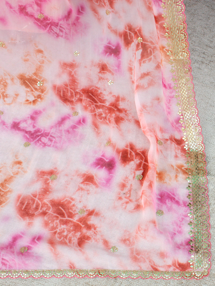 Kiara Pastel Pink & Peach Shaded Chinon Dupatta with Gota Patti Embroidery