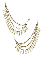 This gold / silver tone 3-layered ear chain is adorned with faux pearls, adding a touch of elegance to your ensemble. Crafted from high-grade alloy metal. Such a piece would work well with both traditional and modern outfits, making it a versatile accessory for various occasions. Whether paired with a festive outfit, a casual chic look, or a formal dress, this ear chain could effortlessly elevate your style.