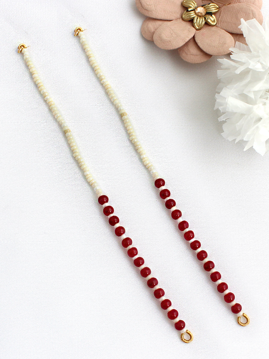 Introducing our Gold Tone Ear Chain adorned with Faux Pearl and Maroon Beads.