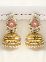 Presenting our Apeksha Jhumka Earrings — a perfect harmony of elegance and artistry. These two-tone (gold and silver) earrings are adorned with simulated Craved stones, kundan, faux pearls, and delicate bedas (ghungroos), radiating a regal and timeless charm. Crafted from high-grade metal, they offer both durability and sophistication, making them an exquisite addition to any ensemble. The gentle sway of the ghungroos and pearls adds rhythmic movement and graceful allure, ensuring you stand out at weddings, festivals, and special celebrations. A statement of royal elegance, the Apeksha Jhumkas effortlessly elevate your ethnic attire with style, charm, and traditional beauty.