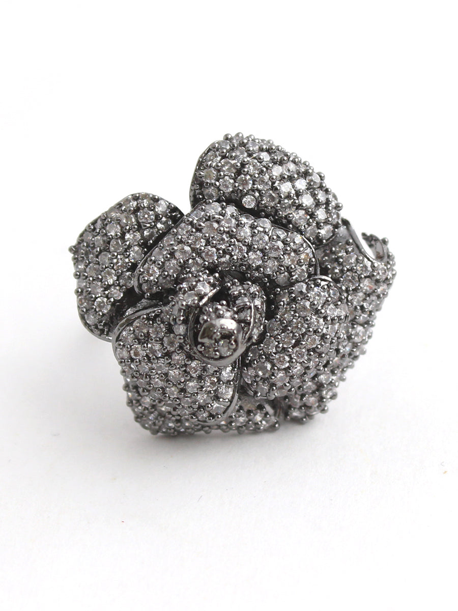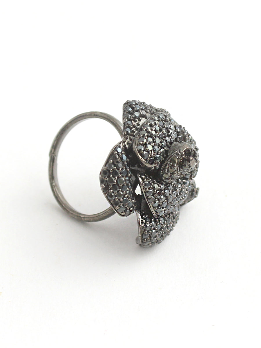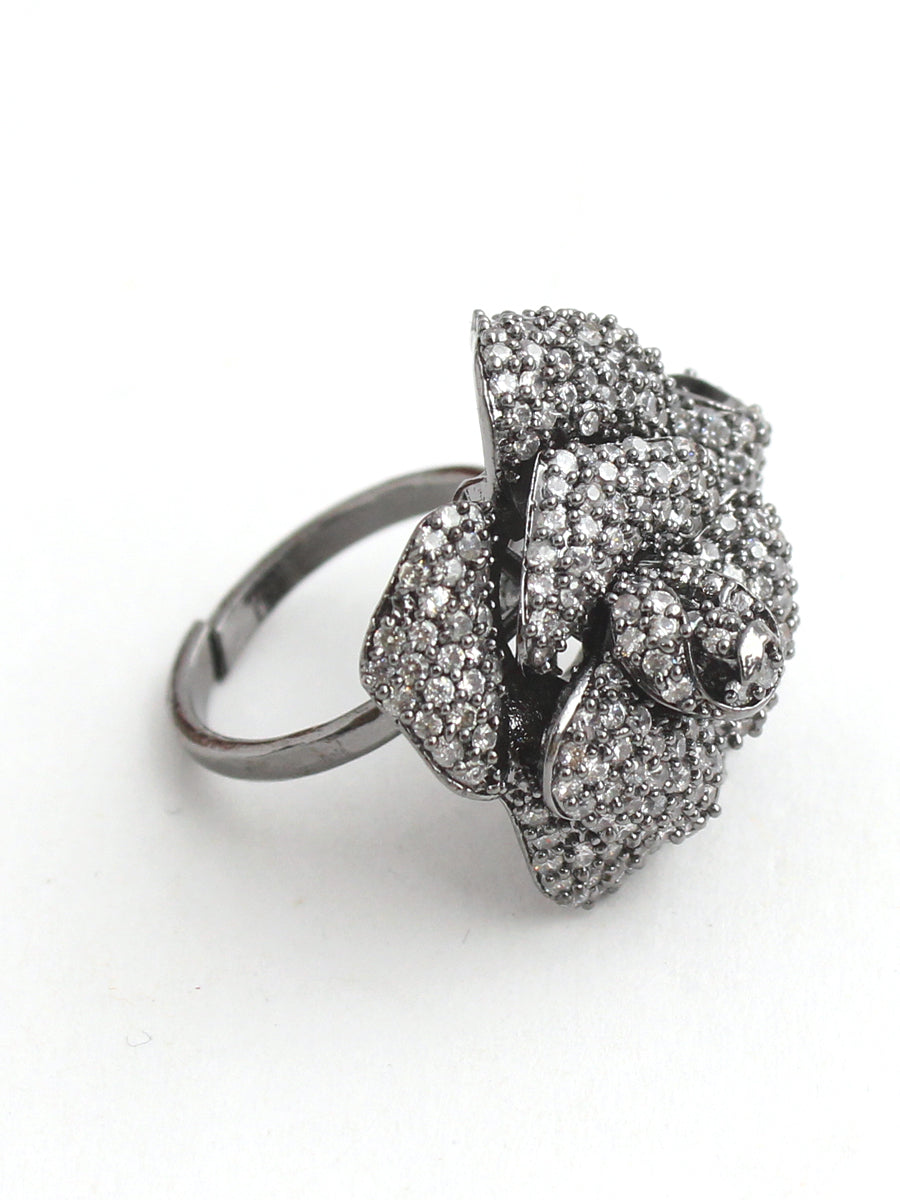 Antique Silver Tone Finger Ring Studded with Simulated Diamond CZs.
